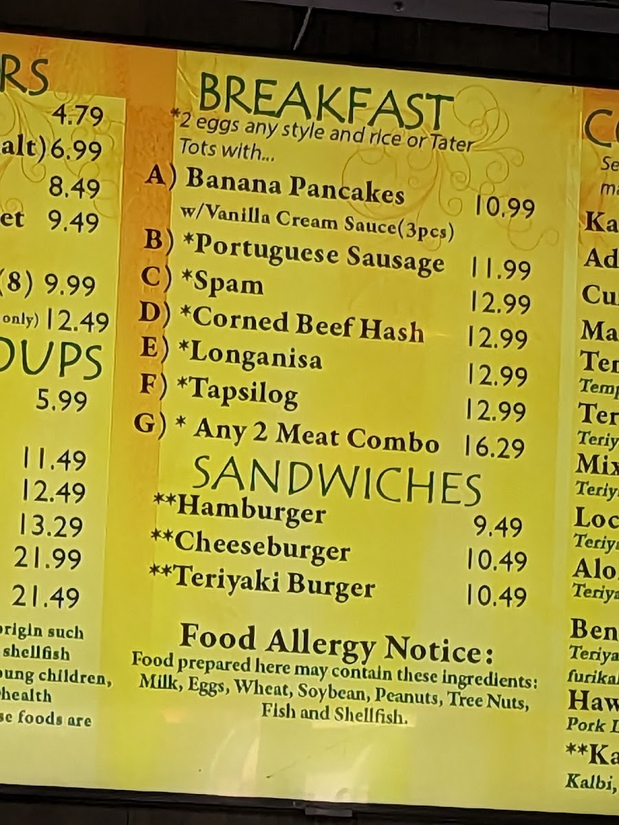 Prepare your taste buds for a culinary adventure! Aloha Kitchen’s menu celebrates the authentic flavors of Hawaiian cuisine. Start your day with the Spam Breakfast, featuring two eggs cooked to your liking paired with rice or crispy tater tots, for a hearty start at just US$16.99. For sweet lovers, the 2 Piece Banana Pancakes drizzled with vanilla crème sauce is a must-try at US$14.50. Lunch or dinner options like the Mahi Sandwich served with golden fries (US$13.59) and the mouthwatering Lumpia Shanghai (US$10.99) showcase the rich tapestry of flavors that reflect Hawaiian hospitality.